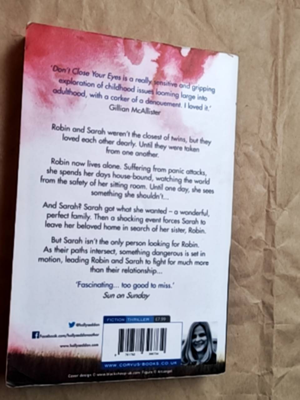 Robin and Sarah weren't the closest of twins. They weren't even that similar. But they loved each other dearly. Until, in the cruellest of domestic twists, they were taken from one another. Now, in her early 30s, Robin lives alone. Agoraphobic and suffering from panic attacks, she spends her days pacing the rooms of her house. The rest of the time she watches, watches the street, the houses, the neighbours. Until one day, she sees something she shouldn't.