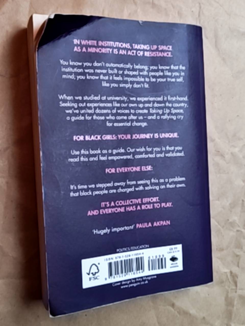 | Description | THE FLAGSHIP 2019 RELEASE OF #MERKY BOOKS ____________________________ ‘Brilliant’ CANDICE CARTY-WILLIAMS ‘Hugely important’ PAULA AKPAN ‘Essential’ BERNARDINE EVARISTO ____________________________ As a minority in a predominantly white institution, taking up space is an act of resistance. Recent Cambridge grads Chelsea and Ore experienced this first-hand, and wrote Taking Up Space as a guide and a manifesto for change. FOR BLACK GIRLS: Understand that your journey is unique. Use this book as a guide. Our wish for you is that you read this and feel empowered, comforted and validated in every emotion you experience, or decision that you make. FOR EVERYONE ELSE: We can only hope that reading this helps you to be a better friend, parent, sibling or teacher to black girls living through what we did. It's time we stepped away from seeing this as a problem that black people are charged with solving on their own. It's a collective effort. And everyone has a role to play. Featuring honest conversations with students past and present, Taking Up Space goes beyond the buzzwords of diversity and inclusion and explores what those words truly mean for young black girls today. ____________________________ #Merky Books was set up by publishers Penguin Random House and Stormzy in June 2018 to find and publish the best writers of a new generation and to publish the stories that are not being heard. #Merky Books aims to open up the world of publishing, and this year has launched a New Writer’s Prize and will soon be launching a #Merky Books traineeship. ‘I know too many talented writers that don’t always have an outlet or a means to get their work seen, and hopefully #Merky Books can now be a reference point for them to say “I can be an author”, and for that to be a realistic and achievable goal… Reading and writing as a kid were integral to where I am today and I, from the bottom of my heart, cannot wait to hear your stories and get them out into the big wide world.’ STORMZY |
